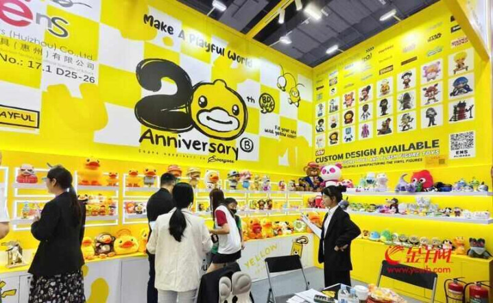 不远处,盈森玩具的明黄色展台上,小黄鸭化身招财猫、歌手、旅行者等角色,趣味十足。展位工作人员李兰(化名)介绍,企业长期深耕盲盒潮玩,虽未出现“爆款”,但积累的IP开发经验让他们在原创市场中更具底气。“从代工到品牌,不仅是模式升级,更得益于长期服务国际客户所积累的生产与品控经验。”