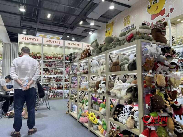 面对原创浪潮,部分代工企业仍选择稳扎稳打。苏豪鼎创股份有限公司经理倪子欣表示,公司参展三四十年,核心业务始终是毛绒玩具代工。“我们从国际品牌身上学到很多,尤其在设计层面。但目前我们仍未创建自有品牌,重心还是服务国外客户。”
