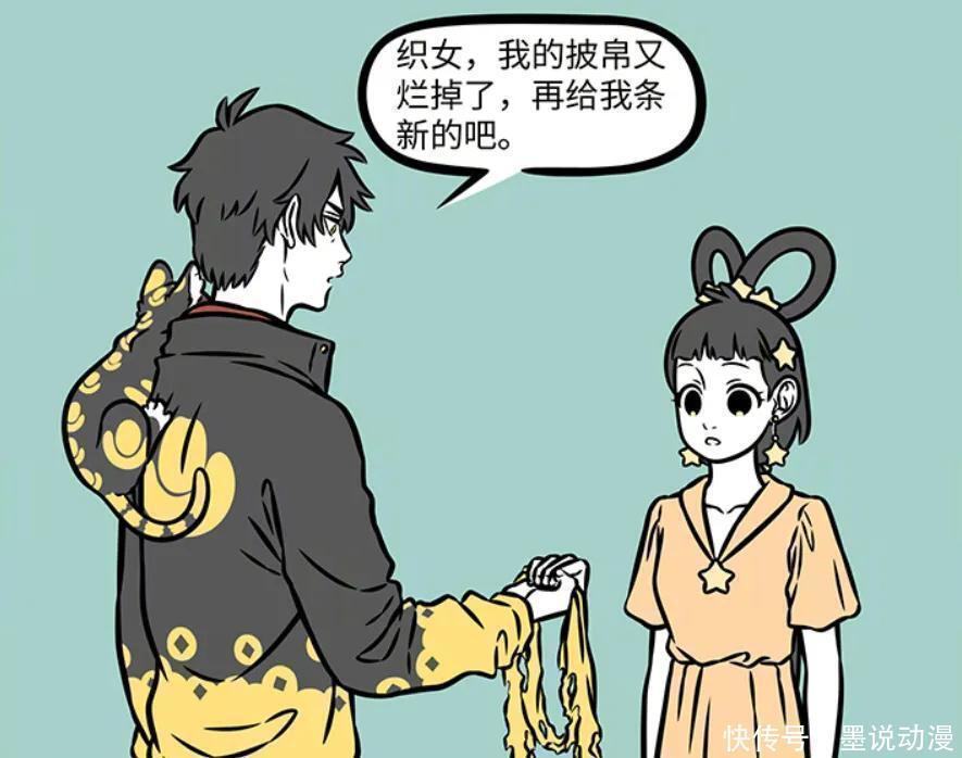 另外就是孙悟空、赵公明等等神仙,都会找织女来做一些衣服,孙悟空是做好兄弟文化衫,赵公明则是做披帛。平时织女也喜欢送人衣服,比如送九月那一身衣物,就让九月拥有飞行能力。送电母的裙子,还被电母改成给云团穿的衣服。